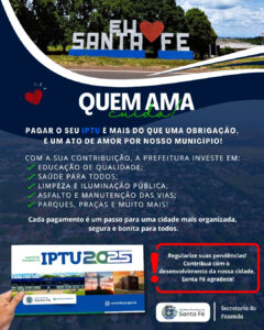 Não deixe para depois — contribua com o desenvolvimento da nossa cidade. Santa Fé agradece você! 🤝