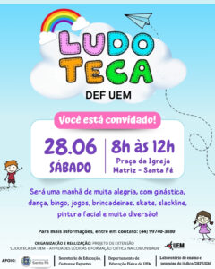Um evento gratuito promovido pelo projeto de extensão Ludoteca da UEM, com o apoio da Prefeitura Municipal de Santa Fé e da Secretaria de Educação, Cultura e Esportes.