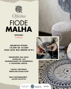 đ Todas as quartas-feiras, das 13h30 Ă s 16h30, no CRAS (Rua Rio Negro, nÂș 41).
