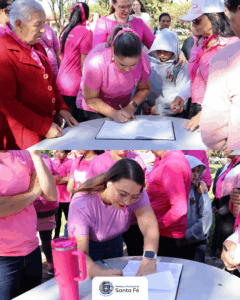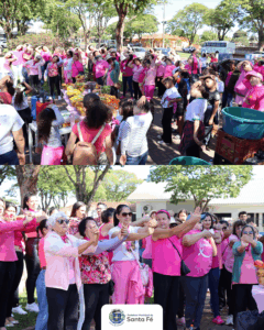 Na manhã desta quarta-feira, realizamos a Caminhada Rosa em frente à Prefeitura de Santa Fé, em apoio à campanha Outubro Rosa.
