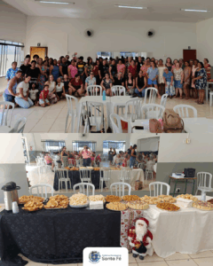 Na sexta-feira, 12 de dezembro, foi realizado o encerramento das atividades do CRAS Santa Fé no Salão do Conjunto Pioneiro, reunindo famílias do Projeto Nossa Gente Paraná / Primeira Infância e participantes dos cursos de Patchwork, Pintura, Fio de Malha e Crochê, ações desenvolvidas pela Secretaria de Assistência Social.