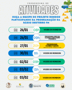 Confira o cronograma de atividades do Projeto Rondon – Operação Pé Vermelho e participe das oficinas! 🇧🇷✨