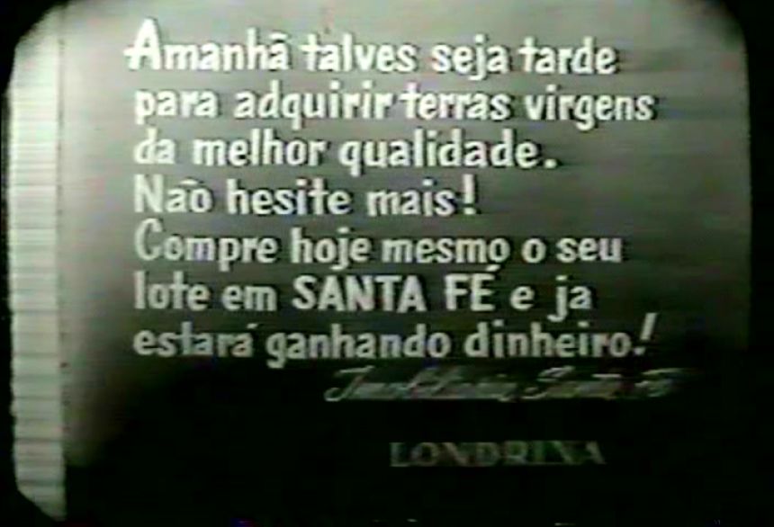 Os novos donos da imobiliária, atentos aos hábitos de lazer da época, perceberam grandes possibilidades de lucros na venda de lotes por meio da exibição de filme propagandístico em cinemas de diferentes cidades. Exibindo tais imagens cinematográficas poderiam atrair investidores para o local, alavancando seu crescimento. Assim, contrataram a empresa Rossi Filmes, também alocada na cidade de Londrina, para que registrasse os flagrantes do desbravamento da cidade a partir de 1949, seus planos de crescimento, as melhorias, e também os eventos realizados até o ano de 1950. A ênfase do filme centrou-se, no entanto, na fertilidade do solo local, na “bênção divina” que representava e nos aspectos relativos a um futuro promissor. Além do filme, segundo relatos do próprio senhor Lupércio Carezzato, confeccionaram um “luminoso” com as seguintes informações: “Santa Fé – venda de datas e lotes – interessados procurar a Imobiliária Santa Fé”. Colocaram esse luminoso no alto da edificação que abrigava as Casas Buri, em Londrina, um estabelecimento comercial daquela época. Não obstante, o meio mais eficaz de atrair compradores de lotes para aquela região ainda concentrava-se no trabalho dos corretores de terras. A Imobiliária Santa Fé possuía vários deles espalhados, principalmente, pelos Estados de São Paulo e Minas Gerais. Eles procuravam convencer potenciais compradores por meio de fotografias e da exibição da referida película, que exercia grande fascínio sobre pessoas que buscavam melhores condições de vida.
